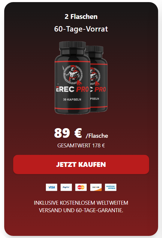 “Ich muss zugeben, ich war anfangs skeptisch, aber ErecPro hat meine Erwartungen wirklich übertroffen. Mein Stoffwechsel arbeitet spürbar besser und ich fühle mich jeden Tag viel selbstbewusster. Absolut jeden Cent wert.”